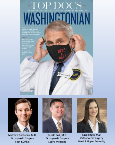 Congratulations to Dr. Matthew Buchanan, Dr. Ronald Paik, and Dr. Cassie Root for being named 2020 Top Doctors by Washingtonian Magazine!