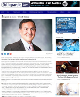 Derek Ochiai went to college at Cornell University, followed by medical school at Case Western Reserve University School of Medicine. He completed his orthopaedic residency at Albany Medical Center, before undertaking a sports medicine fellowship at the Nirschl/Georgetown Sports Medicine fellowship. He was then accepted on to the Arthroscopy Association of North America (AANA) Travelling Fellowship in 2006. He currently works in private practice at the Nirschl Orthopaedic Center, in Virginia, USA. He works with athletes, from elite to weekend warriors, primarily focusing on hip issues and injuries.