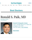 Congratulations to Dr. Paik for being named Northern Virginia’s Best Doctors