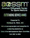 Dr. Paik was recently honored with the Outstanding Service Award from the American Orthopaedic Society for Sports Medicine